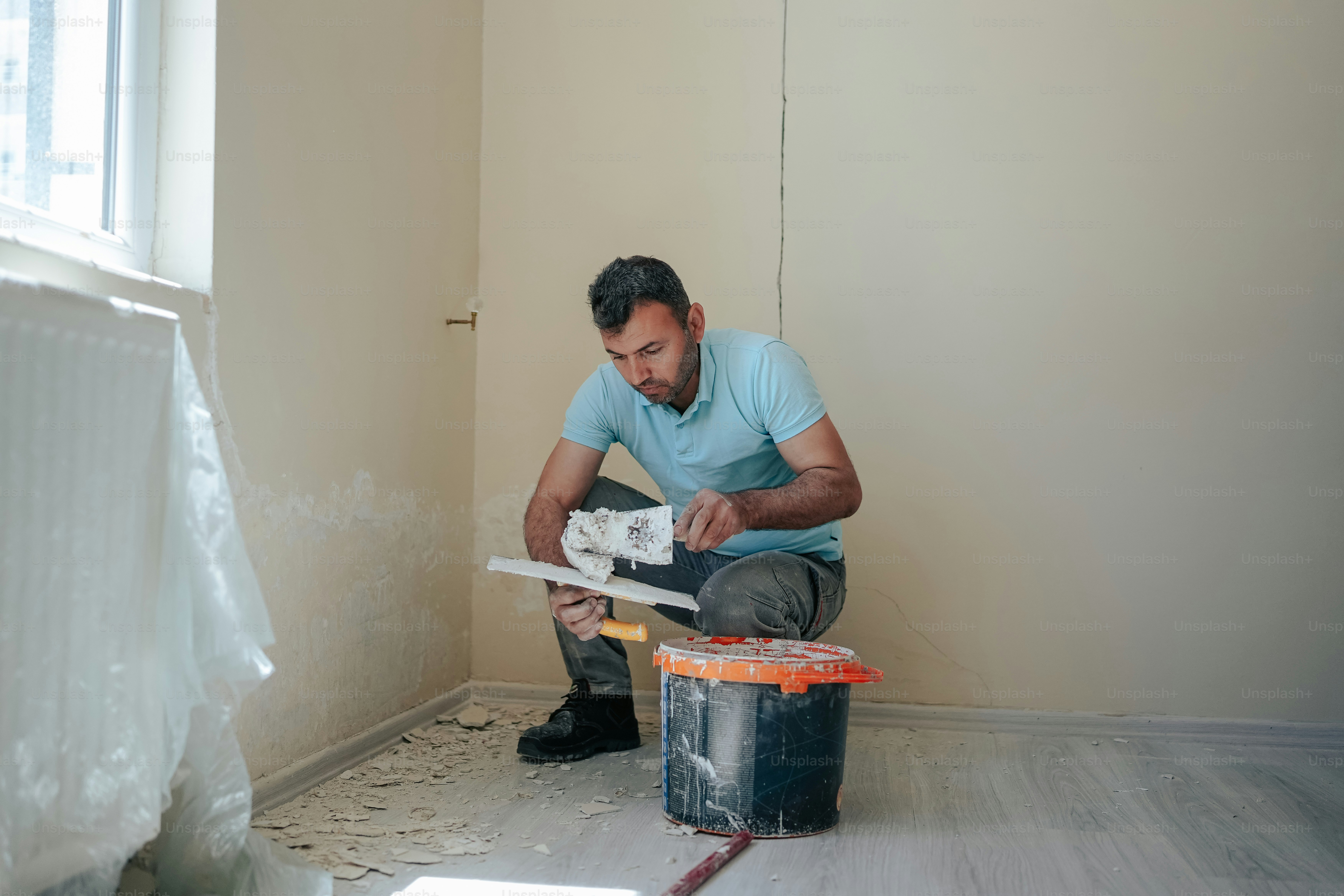 - Nanesení základní vrstvy: Pokud je poškození hlubší, naneste nejprve hrubou vrstvu omítky. Použijte zednickou lžíci nebo špachtli.